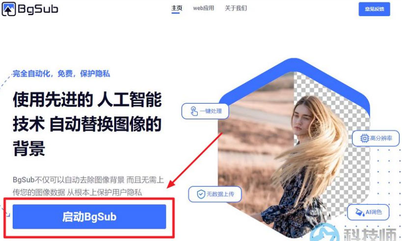 2、如上图所示,进入该工具官网后,我们点击“启动BgSub”就能开始图片去背景处理了;