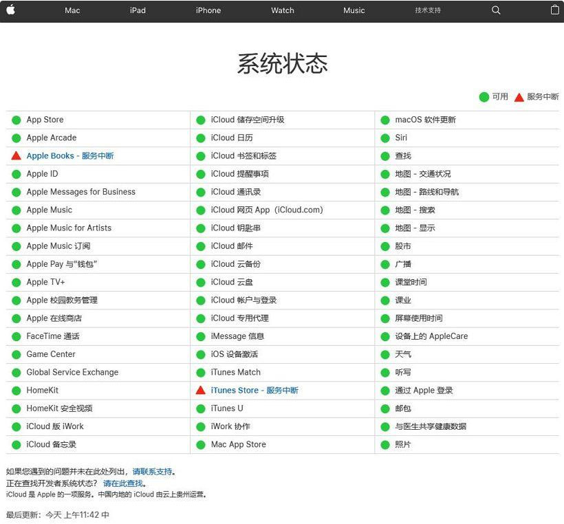 国内查看网址:https://www.apple.com.cn/cn/support/systemstatus/