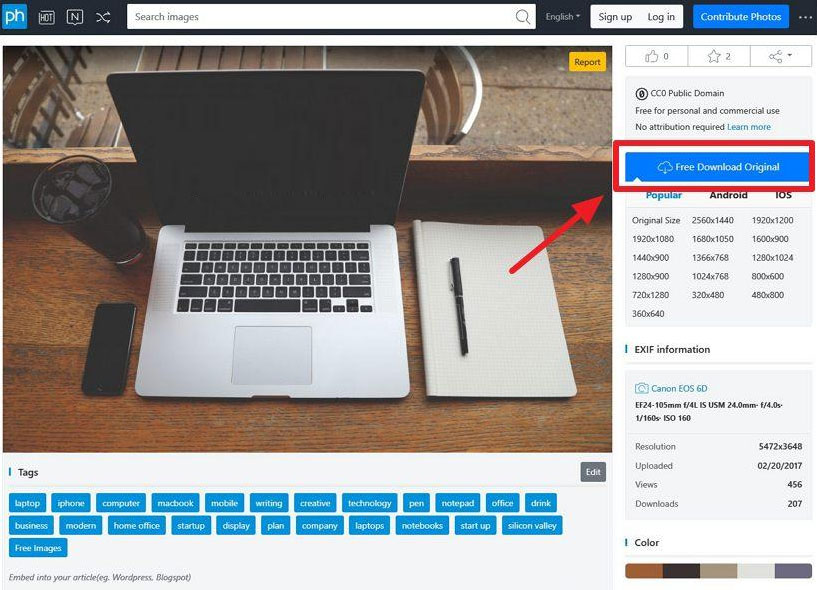 3、进入图片详情页后如上图所示,我们点击图示标注所示的“Free Download Original”即可将原图下载到本地了,支持无账号即可免费下载。