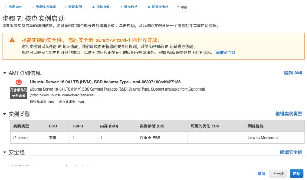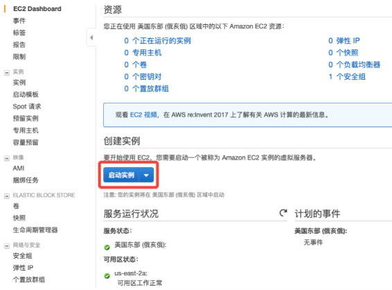 点击启动实例按钮,会创建一个EC2实例并启动。