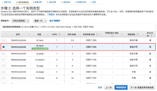选择符合条件的免费套餐实例,点击下一步:配置实例详细信息。