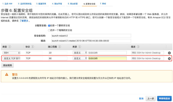 可以开放一些常用的端口,比如80,443等,我们也可以先不设置,后面可以陆续开放。