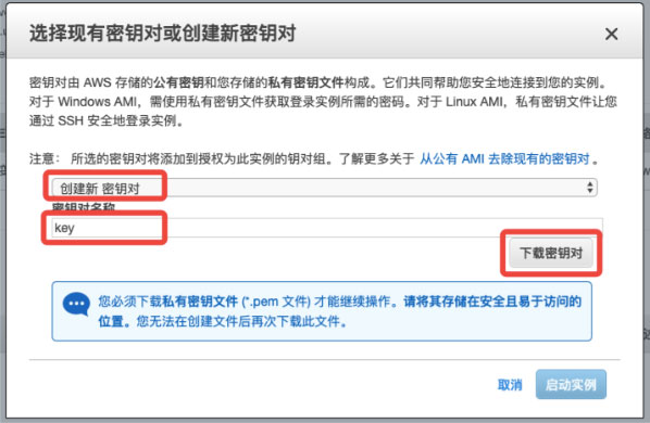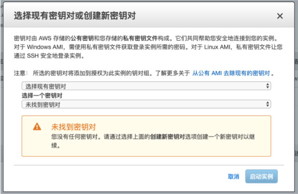 我们在设置EC2实例完毕之后,启动的时候会提示创建密钥的窗口。