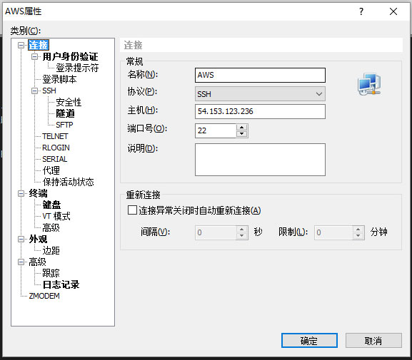 打开SSH客户端工具,填写名称、主机、端口号。