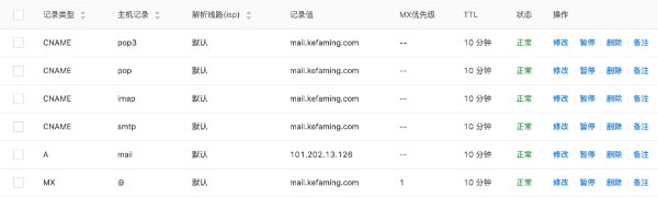 登录域名管理后台,配置域名解析规则,配置以下六条。