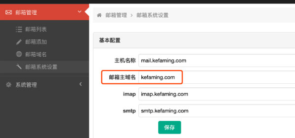 点击左侧菜单中的邮箱系统设置,确认邮件系统设置是否是以下这样。
