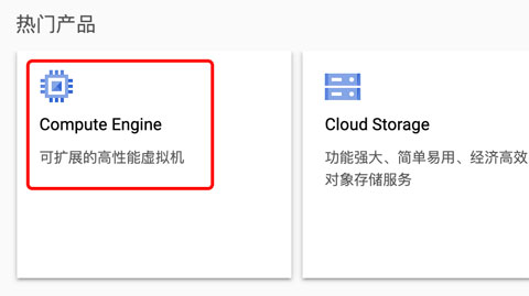 点击菜单中的 Compute Engine,或者直接点击热门产品栏中的“Compute Engine” 。