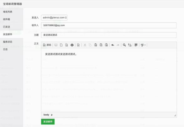 添加完用户后,就可以通过“宝塔邮局管理器”正常收发邮件了。