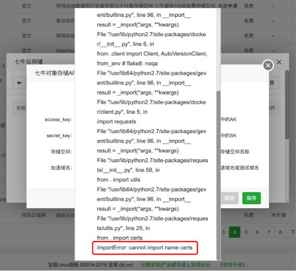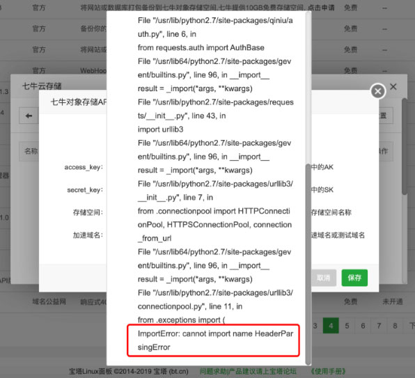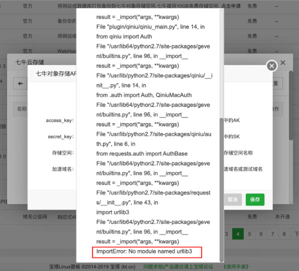 宝塔面板连接七牛云存储常见错误提示及解决方法
